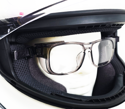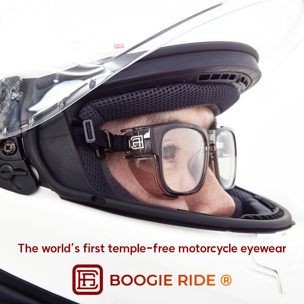 Boogie Ride Temple Free Eyewear is designed for motorcycle riders who feel discomfort when wearing ordinary glasses inside helmets.